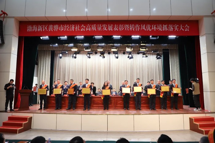 2月28日,在渤海新區(qū)黃驊市經(jīng)濟社會高質(zhì)量發(fā)展表彰 暨轉(zhuǎn)作風(fēng)優(yōu)環(huán)境抓落實大會中,河北中鐵滄鹽木業(yè)發(fā)展有限公司榮獲全市2024年度重大項目建設(shè)先進單位榮譽稱號,公司總經(jīng)理海濱出席本次會議并上臺領(lǐng)獎。