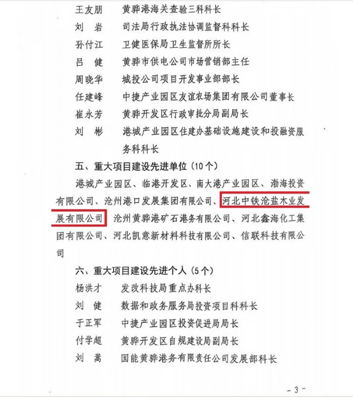 下一步,河北中鐵滄鹽木業(yè)發(fā)展有限公司將以此次表彰大會為契機,嚴格按照市委、市政府及股東要求,進一步完善項目手續(xù),加快項目建設(shè)速度,加大招商入園力度,為推動渤海新區(qū)黃驊市經(jīng)濟社會高質(zhì)量發(fā)展貢獻力量。