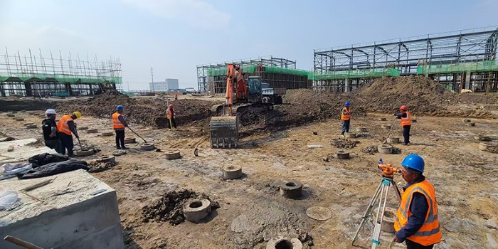 建筑工程公司為確保項目施工進度,節(jié)前召開專題會議,對“五一”期間的施工任務(wù)進行詳細安排,制定了科學(xué)合理的施工計劃。鳴歧項目為了提高施工進度,利用晚上時間進土,晝夜奮戰(zhàn),保障了各個施工單體及場地基礎(chǔ)回填用土需要,假期期間進土1萬余方,為后續(xù)施工進度奠定了堅實基礎(chǔ)。為確保長蘆鹽業(yè)公司泵站工程順利推進,工程技術(shù)部調(diào)配技術(shù)骨干班組,開啟了全天候奮戰(zhàn)模式。截至目前,鳴歧項目一、二車間基礎(chǔ)墻砌筑、圈梁澆筑已完成;港城填方項目已完成噴砂區(qū)填方并通過驗收,其他項目正在加快推進中。