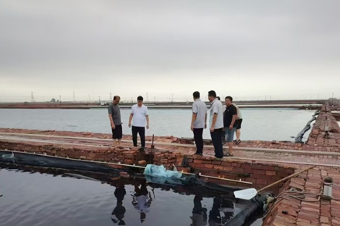長蘆公司在春扒生產(chǎn)中,精細(xì)管理確保高產(chǎn)優(yōu)質(zhì)。面對“兩水”斷供等影響,充分發(fā)揮“北水南調(diào)”工程作用,結(jié)合納潮加強(qiáng)鹵水調(diào)度,堅(jiān)持“鹽溴兼顧,有重不供輕”原則,努力提高供鹵濃度;加強(qiáng)現(xiàn)場操作,做到早除混、早換鹵、早分曬、早加深、早甩鹵;嚴(yán)細(xì)收鹽操作,確保留碴均勻,除混徹底,鹵清鹽白;嚴(yán)格執(zhí)行分曬分存工藝,有效保障了結(jié)晶鹵水和坨鹽質(zhì)量。經(jīng)過合理控淋,所有坨鹽已于6月15日完成苫封。