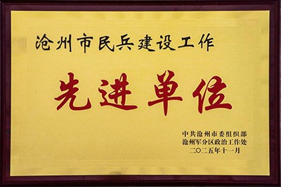 近日,滄州鹽業(yè)集團(tuán)有限公司憑借在民兵建設(shè)工作中的突出表現(xiàn)和扎實(shí)成效,被滄州市委組織部與滄州軍分區(qū)政治工作處聯(lián)合授予“2025年度滄州市民兵建設(shè)先進(jìn)單位”榮譽(yù)稱號(hào)。